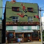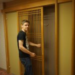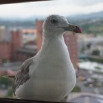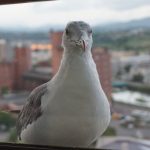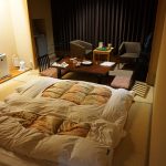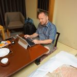Hakodate was the third port to be opened up to foreign trade after the self imposed isolation of Japan ended in 1854. Our hotel was a Japanese onsen (spa) resort by the sea. We were the only Westerners there… Nice Japanese style room, tatami matting floor, with staff coming in during dinner time to move the table and lay out futons and duvets. When I opened up the window to get a good view of the area, we had a visitor arrive looking for food…