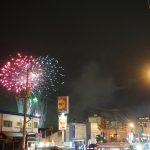 Got the tram back to the hotel and realised that the main street along by the seafront was getting very busy – lots of food stalls, trinkets, and locals arriving in traditional dress (yukata). Turns out it was the Yunakawa Onsen Hanabi – fireworks display. Great evening out, wonderful finish to our time in the north.