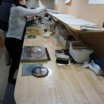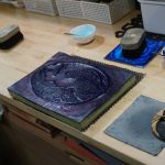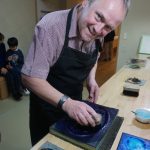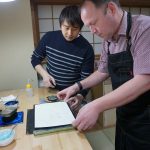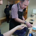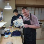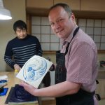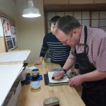 A small group of 5 of us worked through the process of printing our own small version of Hokusai’s ‘Under the Wave off Kanagawa’, a print many people will recognise. David and his assistant Kawai guided us through the steps of inking each block, aligning the paper, and using a ‘baren’ to rub the washi paper against the block. David is a force of nature – extremely animated and enthusiastic about what has been his life’s work, great fun session. And the print turned out OK as well!